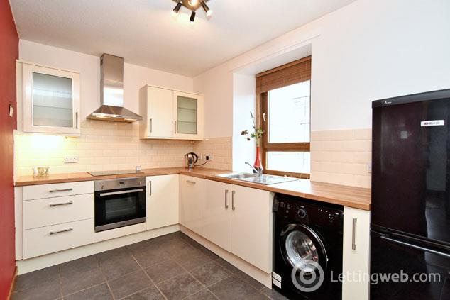 Kitchen: (12'3" x 7'6") Stylish Kitchen off the Lounge with range of cream gloss base and wall units; Integrated electric hob, oven/grill extractor hood; Tiled floor; Washing machine and fridge freezer; Window to the rear.
