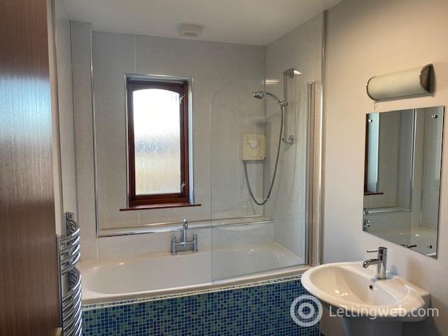 Bathroom: Bathroom fitted with a white suite comprising Bath with overhead Shower and curtain rail, wash hand basin and WC; Window to rear.
