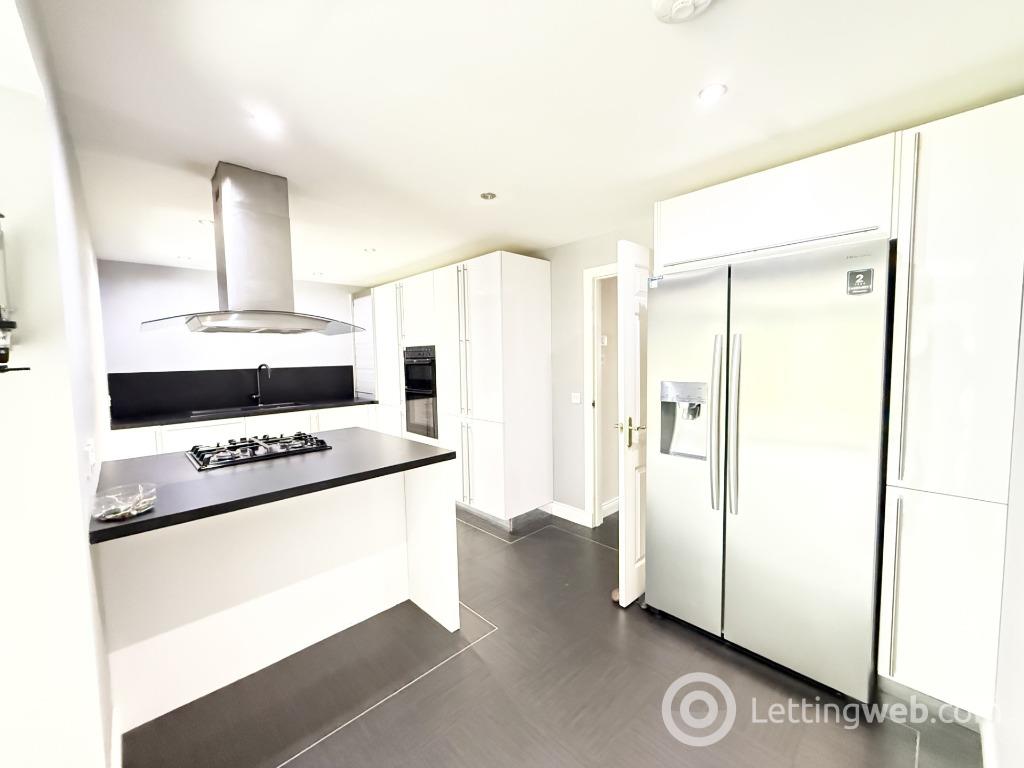 Kitchen: 5.22m x 3.28m (17’2â x 10’9â) approx. Smart kitchen fitted with a good range of white gloss units with contrasting black worktops. 1.5 sink with drainer. Kitchen Island with breakfast bar and Bosch gas hob with extractor canopy. Integrated NEFF oven, grill, and dishwasher. Amtico flooring.